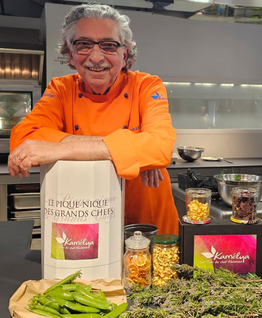 Alain Alexanian, a Lyon-based chef of Armenian origin, now puts his creativity at the service of his passion for the art of tea. He believes that cooking, and what we consume in the broadest sense of the term, is inextricably linked to health and environmental preservation. He is actively committed to responsible cooking and social balance. Alain cooks for good causes, such as this charity meal organized in June 2024 in Yerevan, the Armenian capital, in collaboration with Bocuse d’Or winner Davy Tissot. Together, they are raising funds to finance a three-years culinary course for four young enthusiasts at the Centre d’Enseignement Professionnel Franco-Armenien, opened in Yerevan by the Société d’Enseignement Professionnel du Rhône (SEPR). The chef also works with ARPEJEH (Accompagner la réalisation des projets d’études de jeunes élèves et étudiants handicapés), an association that promotes the employment of disabled people, equal opportunities and diversity. He also supports Team for the Planet, an organization committed to fighting climate change.